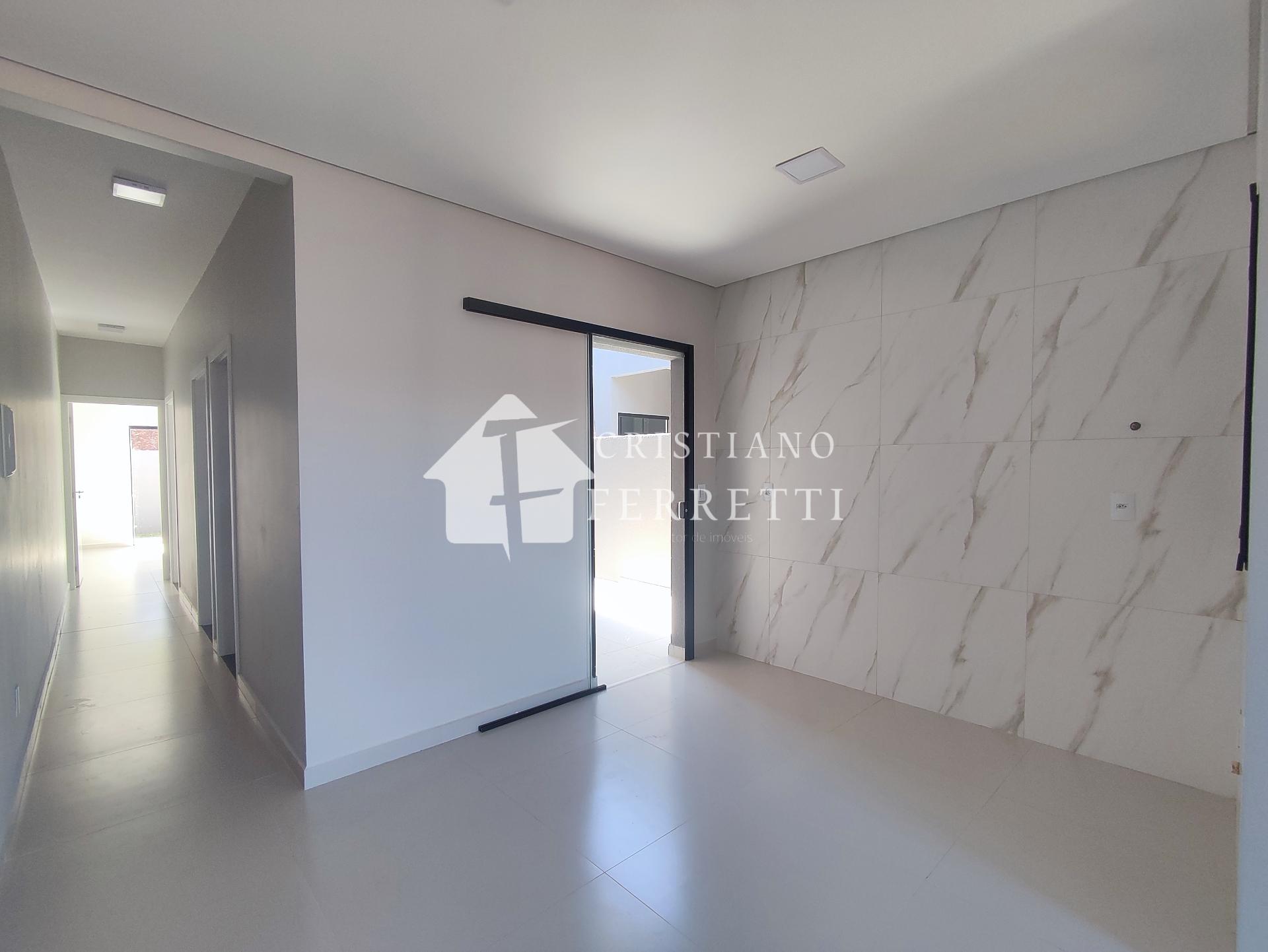 - Composto por sala de estar, cozinha, três quartos, banheiro social e lavanderia;